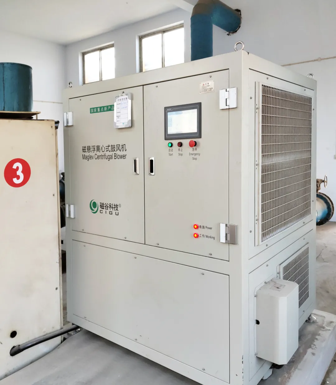山西翼城汙水處理廠之前使用的羅茨鼓風機運行能耗高、日常維護保養工作量大、噪音高、流量調節不便,且隨著使用年限增長,風機性能下降明顯,曝氣量已不能滿足處理要求。將原有3台羅茨風機升級替換成磁穀科技磁懸浮離心式鼓風機。