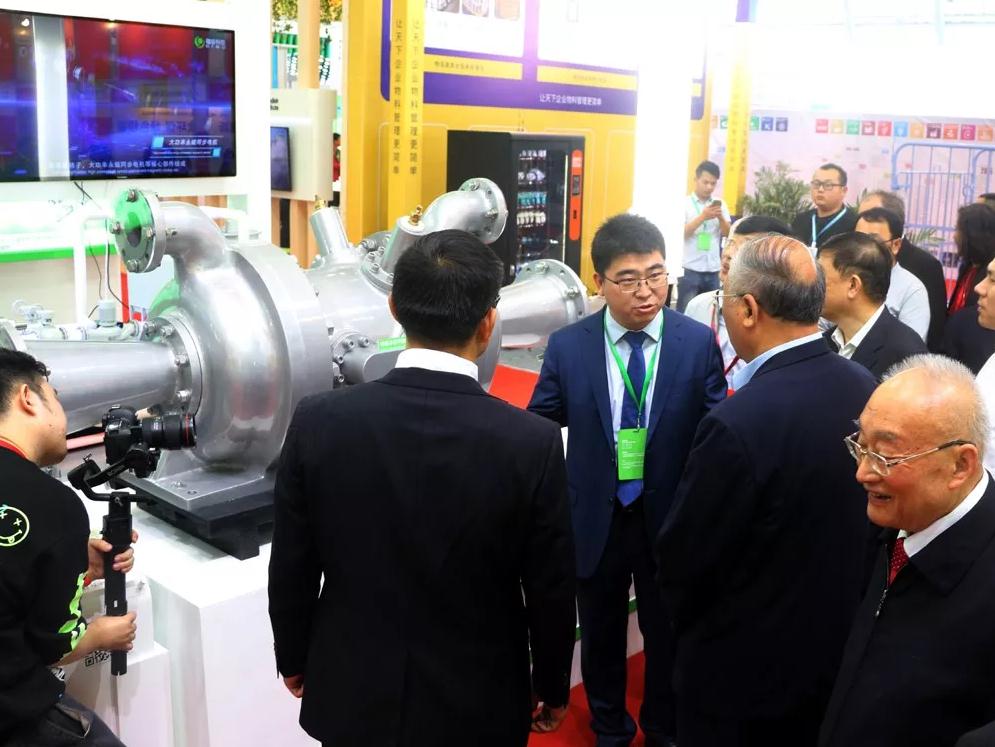 南京磁穀科技總經理董繼勇向解振華等一行領導及專家介紹南京磁穀科技自主研發的國內首款“磁懸浮透平膨脹機”。
