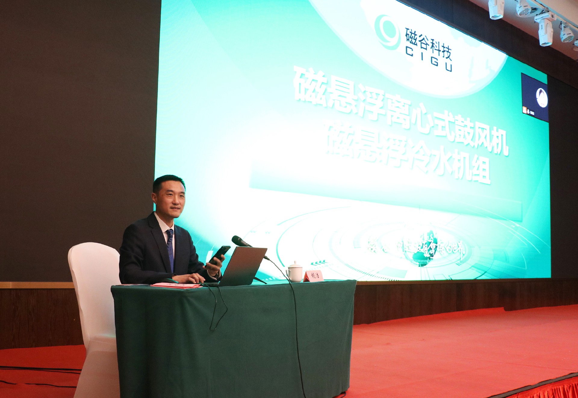 南京磁穀科技股份有限公司營銷總監胡浩受邀介紹磁懸浮節能係統解決方案。從磁懸浮節能技術、節能產品、高效應用等多角度,講解了磁穀科技曆經多年的研發創新,以磁懸浮離心式鼓風機、空壓機、冷水機組等節能設備,幫助三菱化工、中國石化、中國水務、盛虹集團、南方水泥、安琪酵母等一眾行業領軍企業實現了節能降耗。