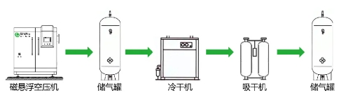除塵、除菌:一般壓縮空氣除塵會根據過濾精度來選擇三級或者四級過濾器,來將氣體中的塵去除幹淨,還需要定期更換濾芯來保證持續潔淨無塵的壓縮空氣,最後配置除菌過濾器。